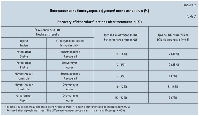 Таблица 2 Восстановление бинокулярных функций после лечения, n (%)
